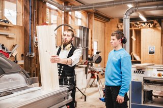 Bei der Übergabe erhielt er von seinem Vater Walter Zimmermann einen Ketschhobel. Der Zweimannshobel steht für gute Teamarbeit und dem Versprechen, niemanden über den Tisch zu ziehen. Diese Firmenkultur prägt unser Verhalten seit der Gründung im Jahr 2000.